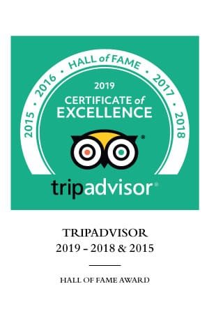 2019 – 2018 & 2015 TRIPADVISOR – HALL OF FAME AWARD